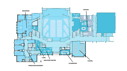 The new construction will happen primarily on the north side of the building (near the pond) as well as the west side of the building (main entry and café). Some renovation will also occur in the current nursery space as well as the staff office area. Gratefully, the project is not expected to significantly disrupt Sunday services or the day-to-day functioning of the building.