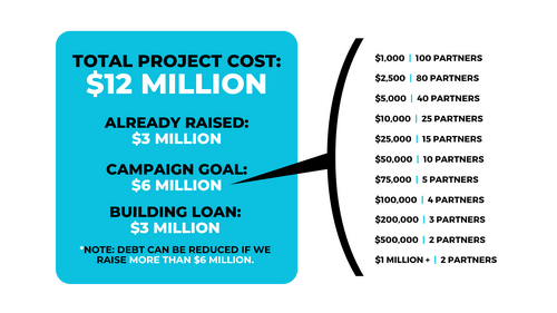 If we are able to exceed our fundraising goals, additional funds will be allocated to a relocation of the tech booth in the Worship Center, opening up site lines from the back of the room.